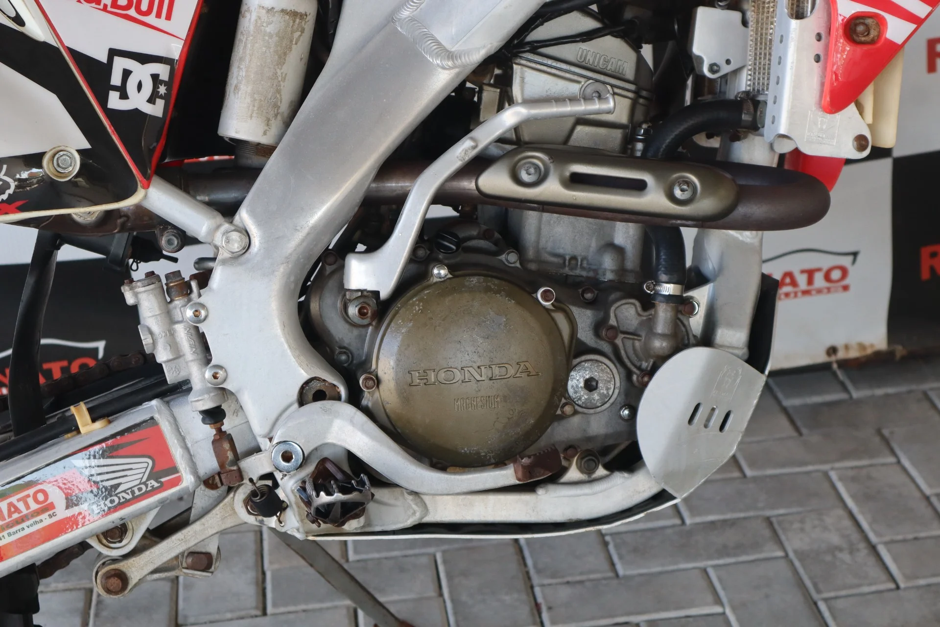 suspensao central / sistema pro link / em aluminio / suspensao dianteira invertida / freio a disco dianteiro e traseiro / amortecedor traseiro a gás / amortecedor do guidão